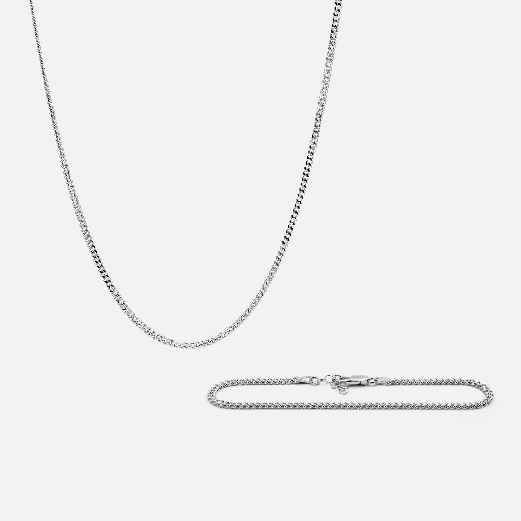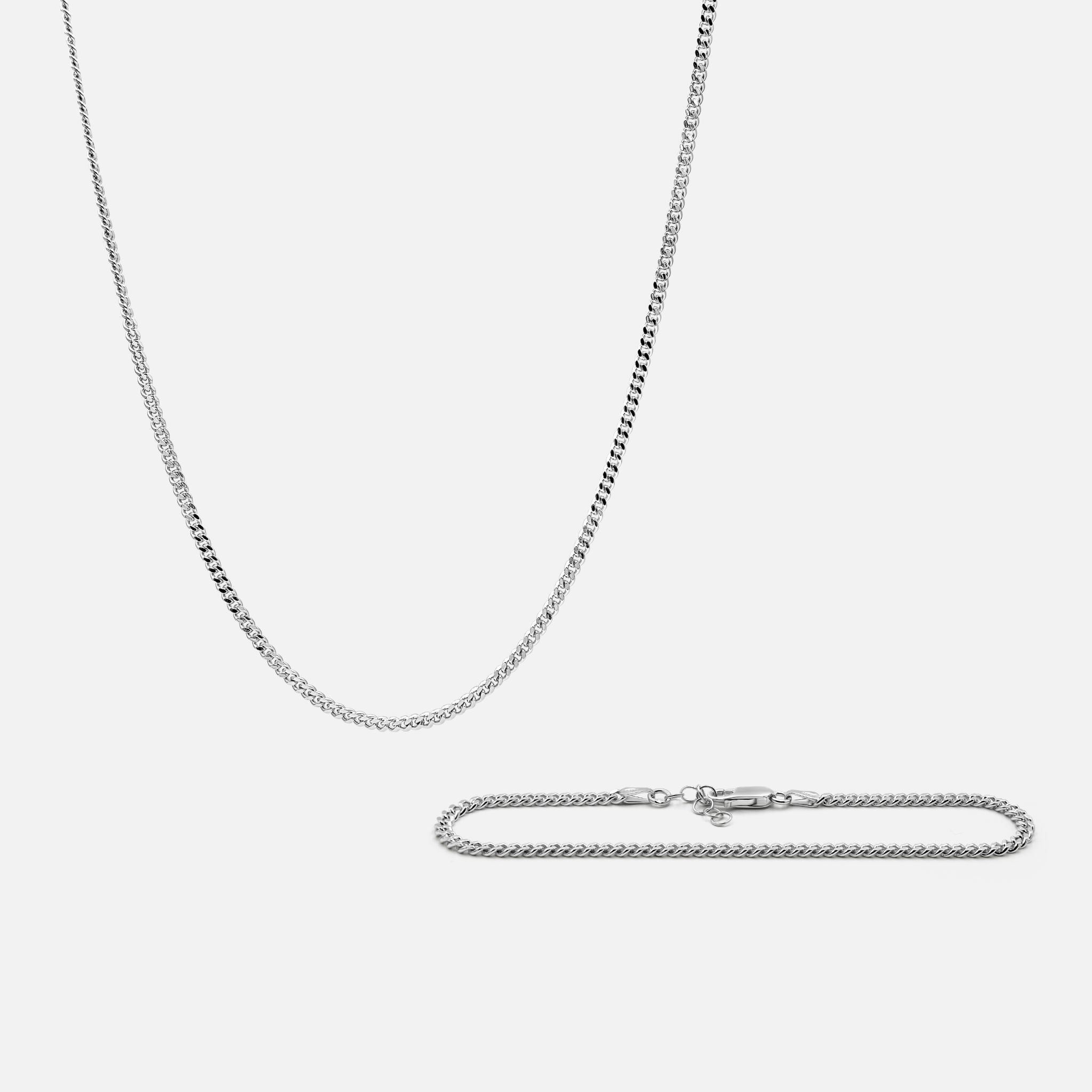 Dieses Set vereint das Curb Slim Armband und die Curb Slim Halskette zu einem minimalistischen, eleganten Ensemble.