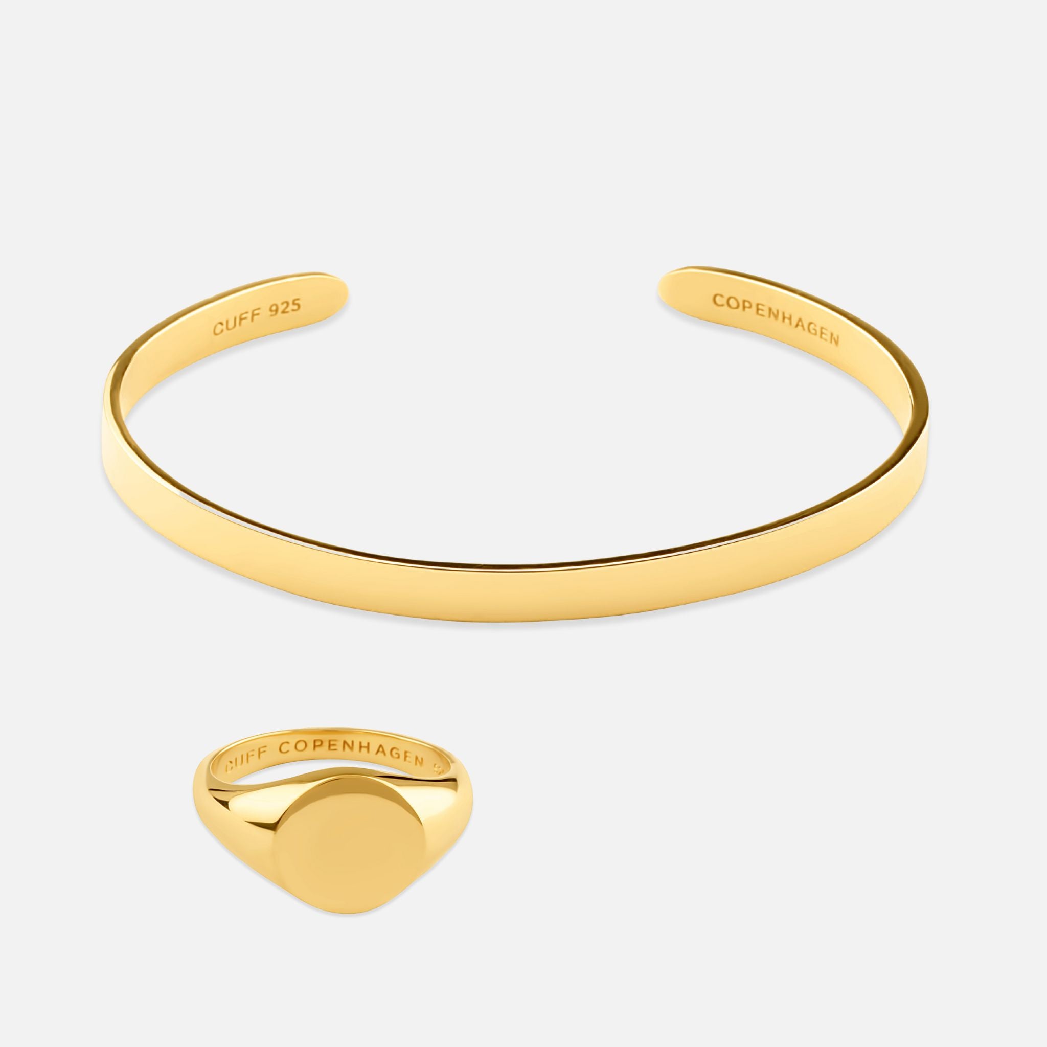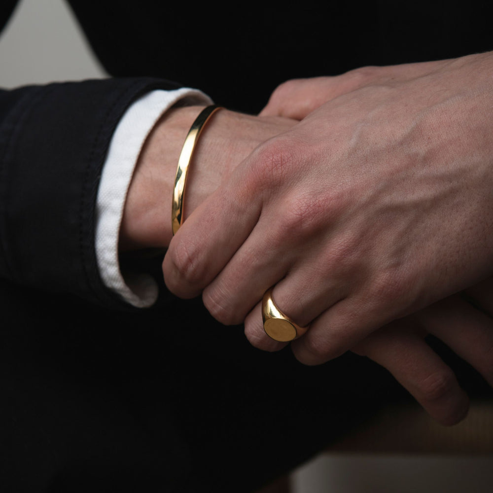 Eine perfekte Kombination aus minimalistischer Raffinesse und klassischem Stil, bestehend aus dem Blair Armband Slim und dem Ellery Signet Ring.