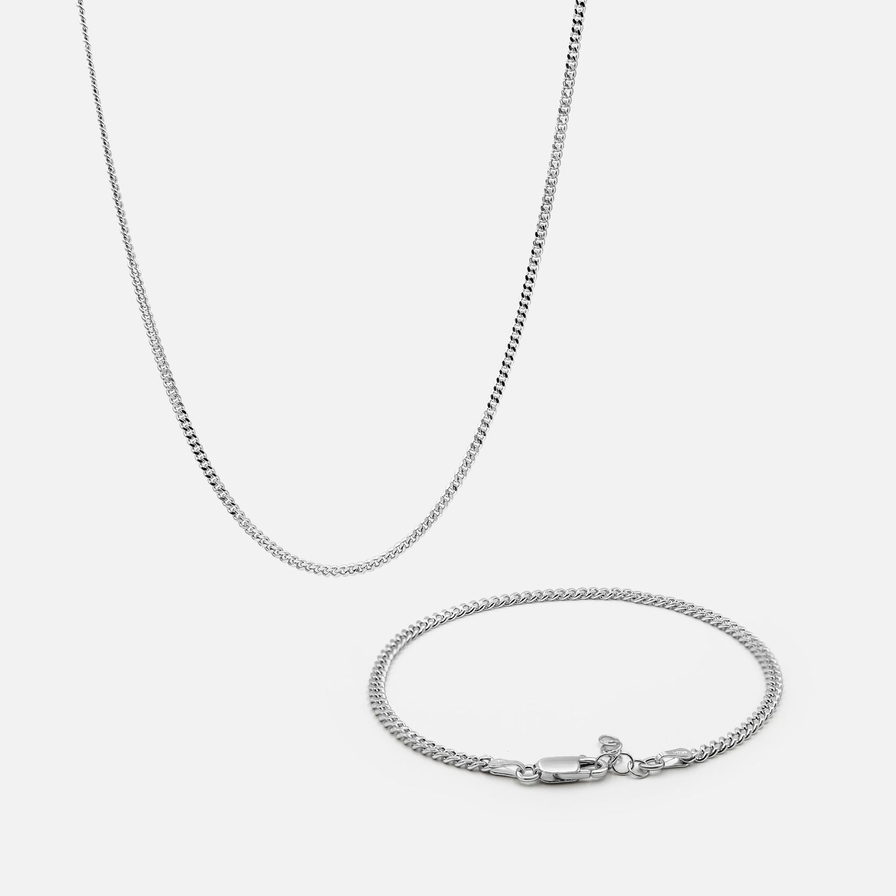 Dieses Set vereint das Curb Slim Armband und die Curb Slim Halskette zu einem minimalistischen, eleganten Ensemble.
