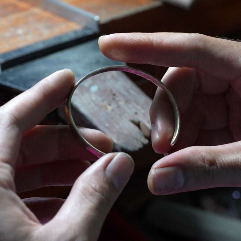 Hvert armbånd formes, slibes og poleres af erfarne sølvsmede. En præcis proces, der sikrer en glat overflade og rene proportioner.